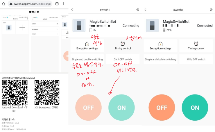 뒷면에는 매직스위치봇을 제어하는 앱을 설치할 수 있는 QR코드가 인쇄되어 있습니다.